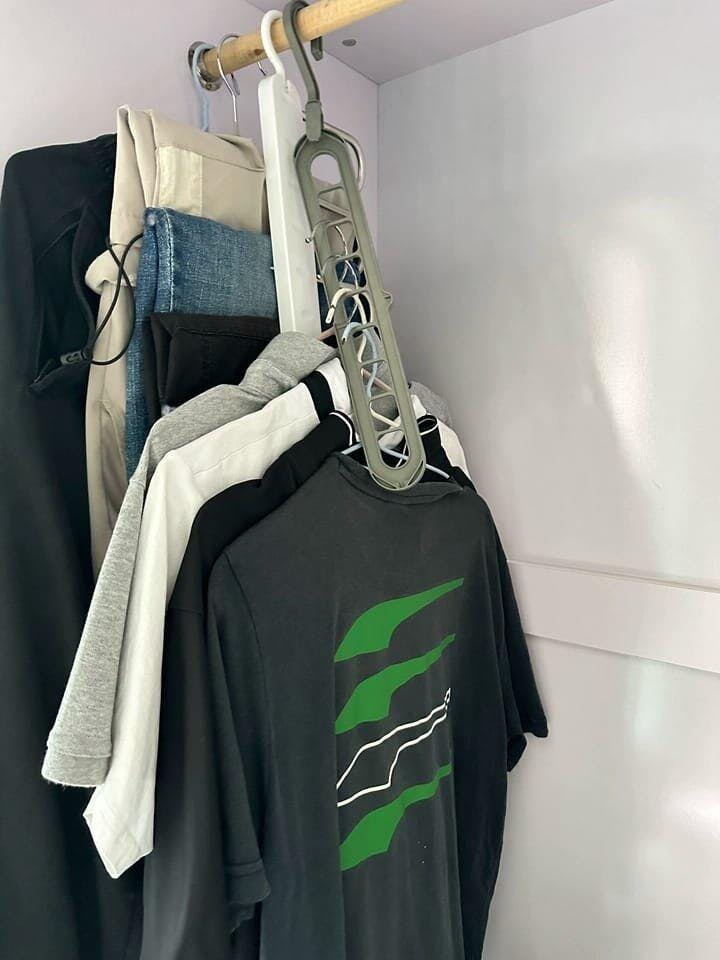 📌 スマート&省スペース! – 1つのハンガーに9着まとめて収納